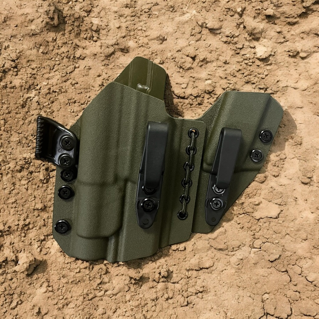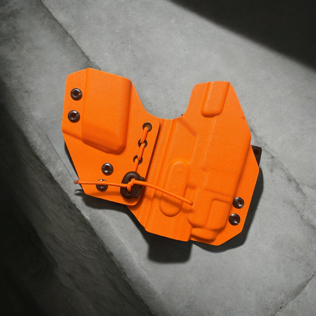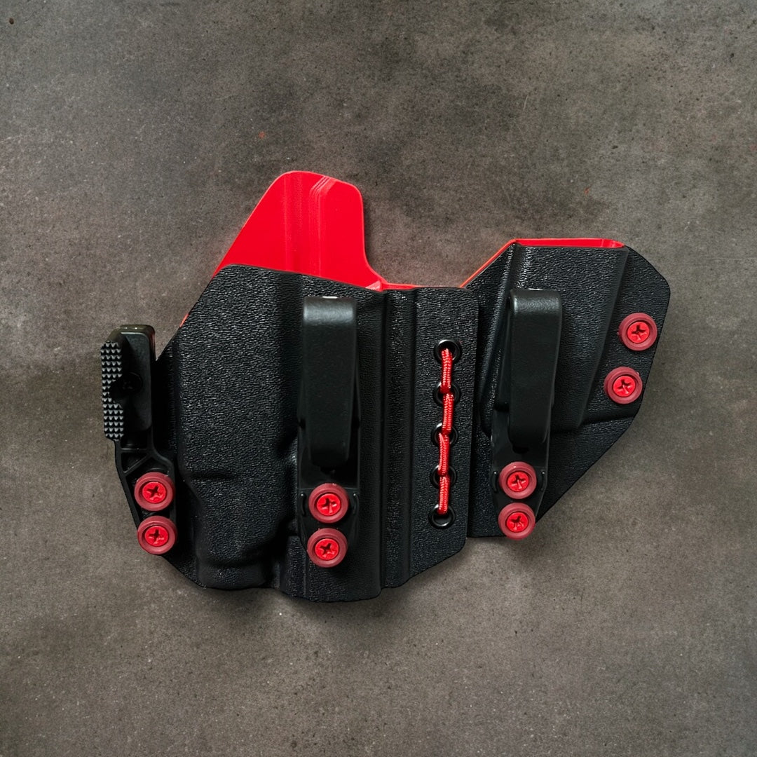 AIWB Sidecar Holster 2.0 - Light Bearing: Here at Modern Patriot Holsters we take pride in giving our customers the absolute best in customized holster options. Our AIWB Sidecar Holsters are truly a work of art! We offer several kydex color options including carbon fiber and much more. Coupled with a multitude of belt attachment options to make your holster as simple or as complex as you desire. We finish each holster with your choice of colored finishing washers and screws. Stop searching for ordinary and make a holster that stands out of the crowd!