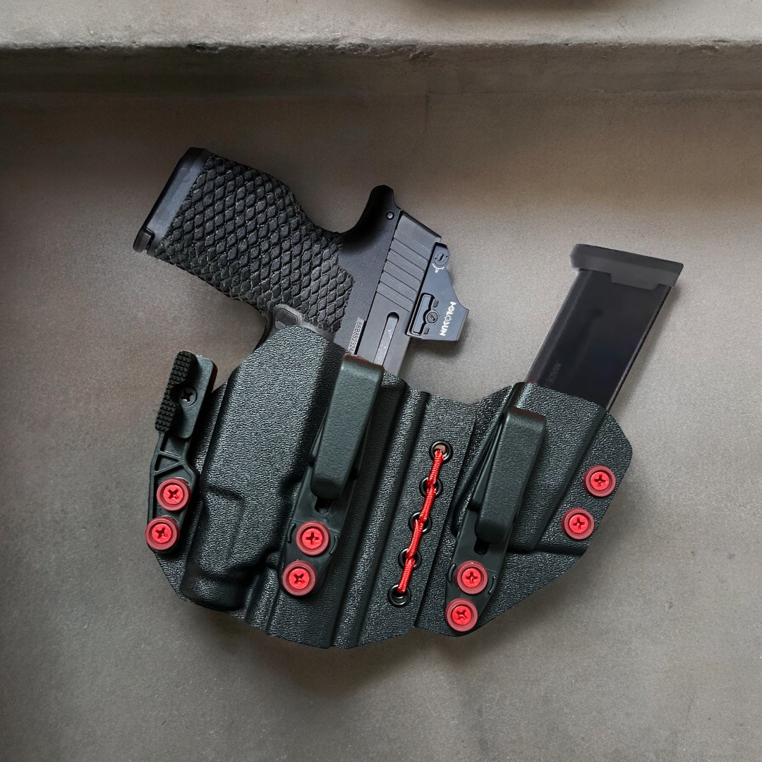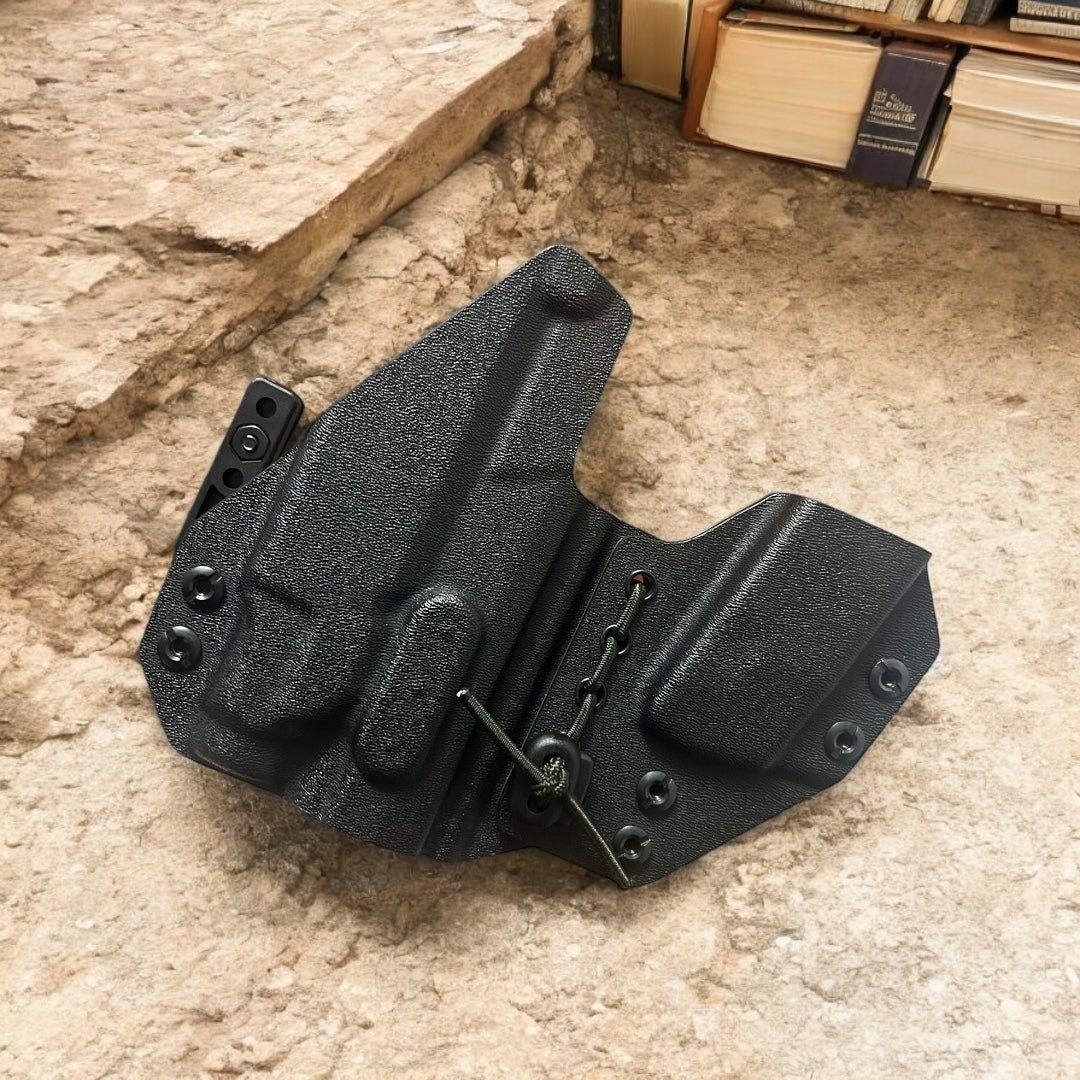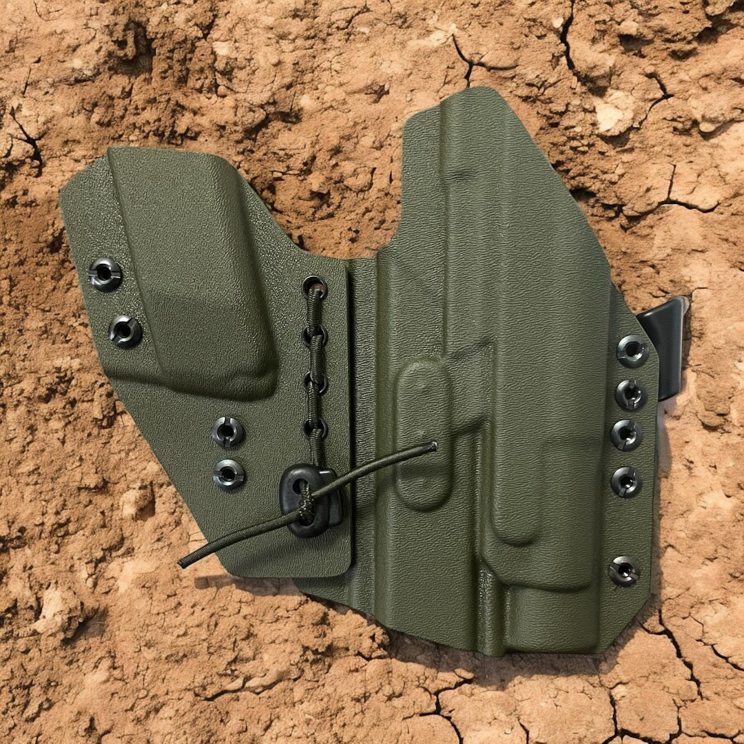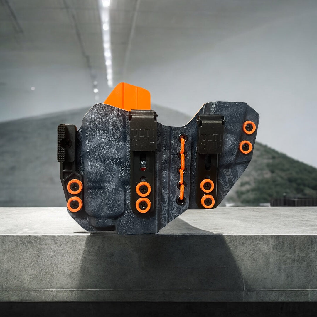 AIWB Sidecar Holster 2.0 - Light Bearing: Here at Modern Patriot Holsters we take pride in giving our customers the absolute best in customized holster options. Our AIWB Sidecar Holsters are truly a work of art! We offer several kydex color options including carbon fiber and much more. Coupled with a multitude of belt attachment options to make your holster as simple or as complex as you desire. We finish each holster with your choice of colored finishing washers and screws. Stop searching for ordinary and make a holster that stands out of the crowd!