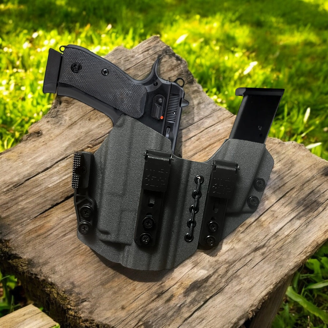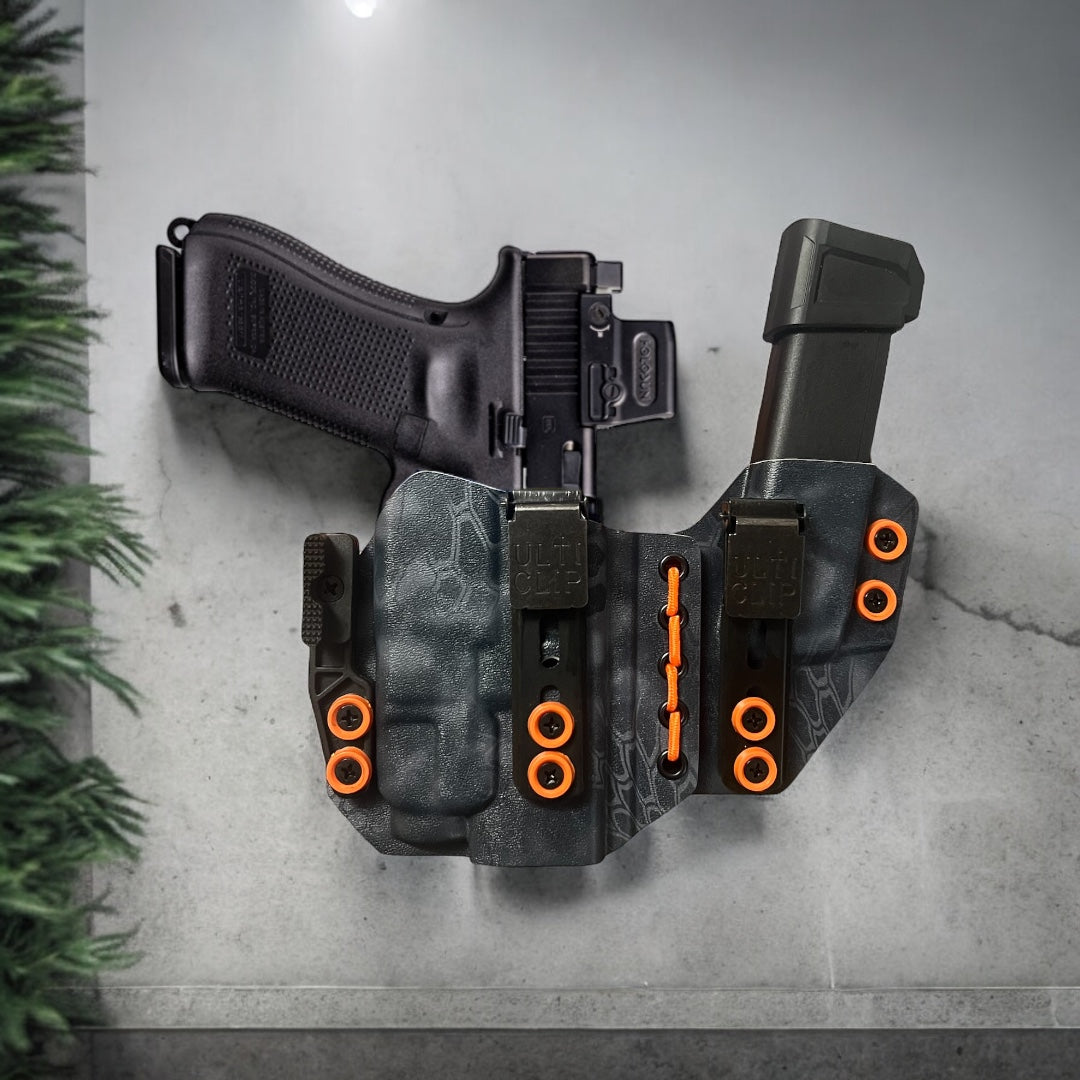 Concealment Claws: These claws are used to push against your belt line and twist the grip of the firearm into your body. We offer multiple options so that customers who are used to one or the other can have the choice. We do not believe there to be a huge difference between one or the other from personal experience however both options do help conceal extremely well.