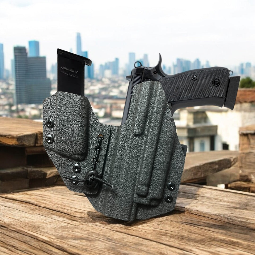 Optic Cuts: Our optic cut is fairly universal except for a few choice optics on the market. If you choose an optic cut but do not have an optic on your firearm it will not make a difference on fitment or retention. If you order an optics cut and it does not fit simply send it back and we will modify your holster appropriately and send it back.