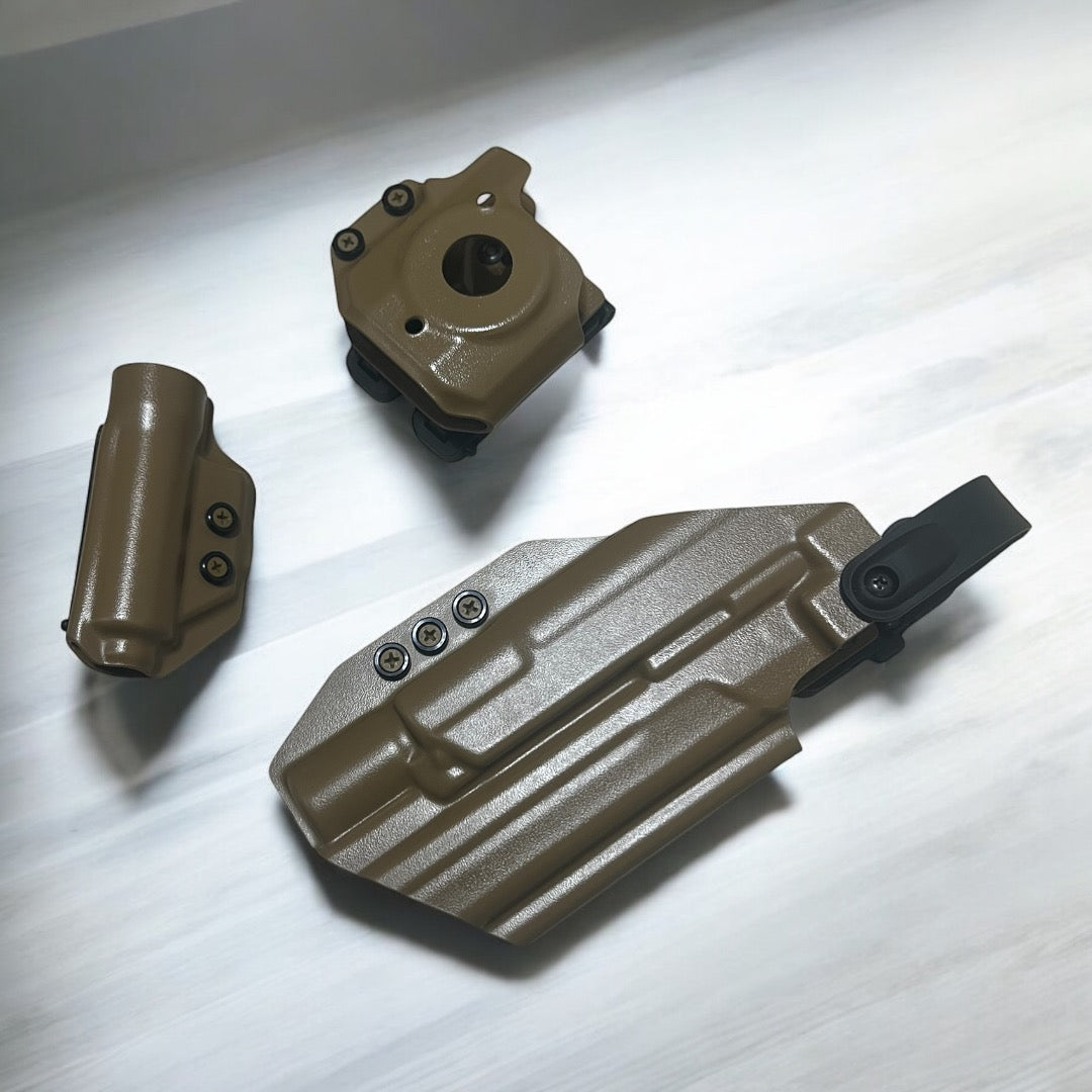 Attachment & Mounting Options: Our carriers can be made to fit a variety of belt attachments or mounts. We offer several options for add ons and take pride in just how customizable our holsters are.