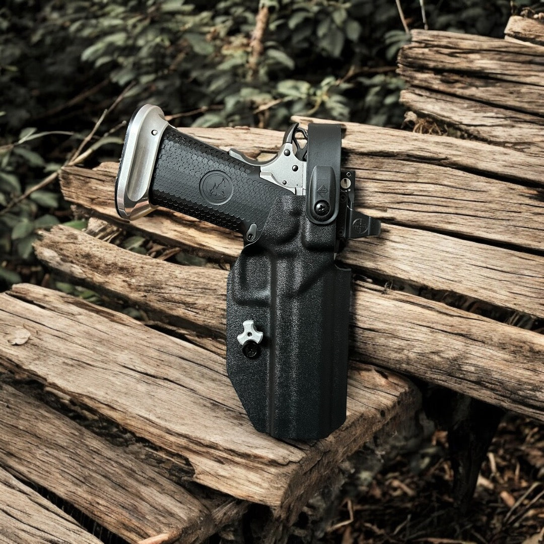 Duty Holster: Here at Modern Patriot Holsters we take pride in giving our customers the absolute best in customized holster options. Our Duty Holsters are truly a work of art! We offer several kydex color options including carbon fiber and much more. We finish each holster with your choice of colored finishing washers and screws. Stop searching for ordinary and make a holster that stands out of the crowd!