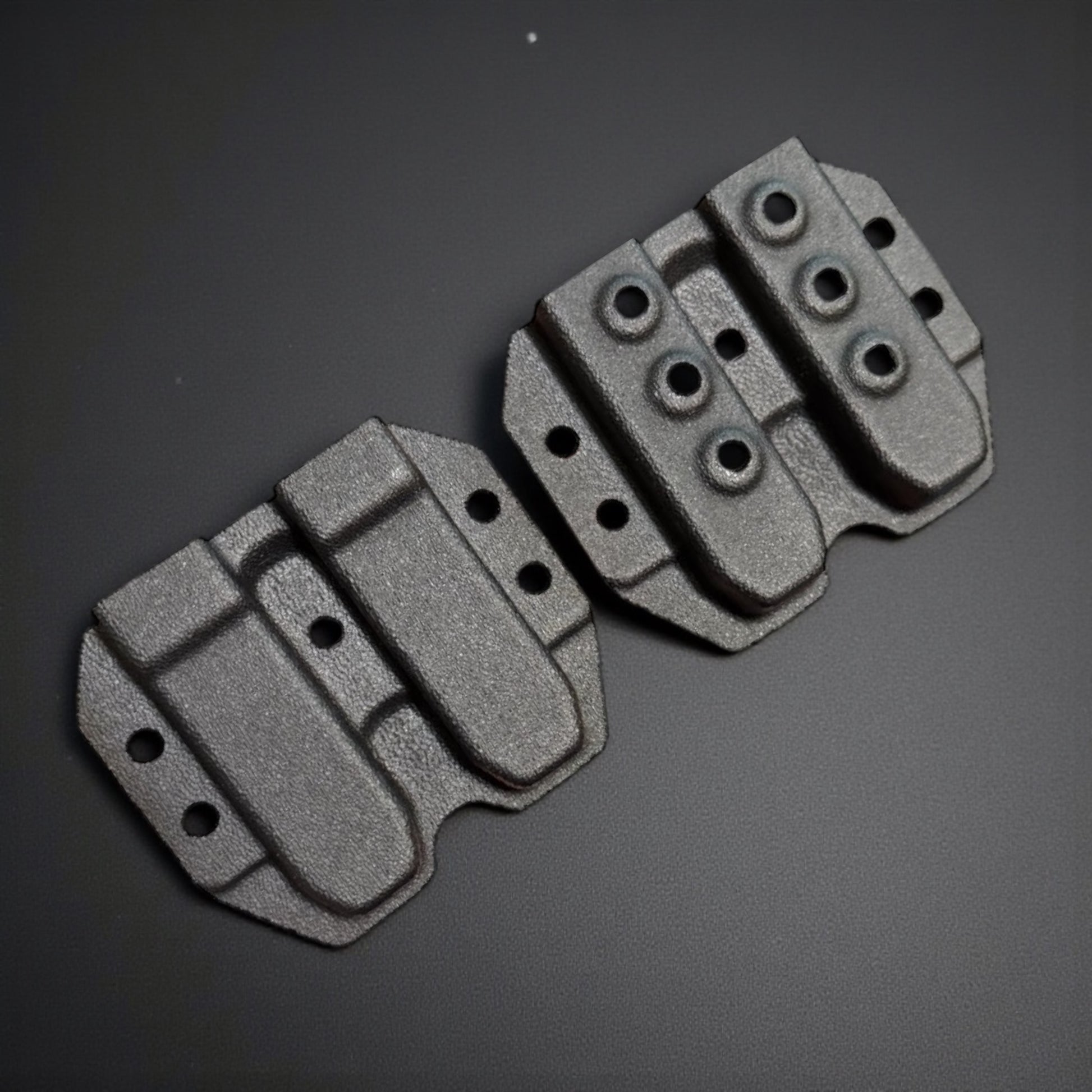 Duty Pistol Mag Carrier SHELL ONLY: These carriers are built specifically for OWB applications. You will need to bend and buff these shells unless you choose to add these services to your order. Please specify your draw hand and belt attachment you plan on using for proper hole placement.