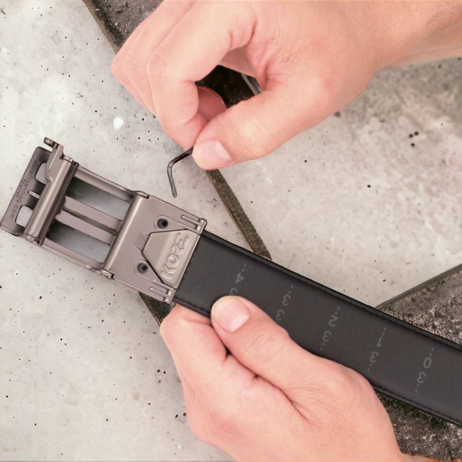 Whats Included: Your choice of buckle and top Nylon reinforced belt, hex wrench, & set screws. Best fitting, most comfortable EDC gun belt you’ll ever wear. Precise, secure fit provides a smooth, fast draw every time. NO Belt Holes. Kore concealed carry belts use a hidden track with 40+ sizing positions, that adjusts ¼” at a time. It's 800% more adjustable vs. traditional gun belt with holes. Designed to support small to medium weight firearms (4 lbs. max). Classic subtle buckle designs, because no one needs to know you’re carrying. Top Grain Leather with our proprietary Reinforced Power-Core™ center for strong support & stiffness. Buckle styles differ but mechanism and function is the same. Leather Gun Belts are 1.5" wide and One-Size to fit any waist size from 24” up to 54”. Belt is secured to buckle using large teeth clamp and 2 set screws with hex wrench (included).