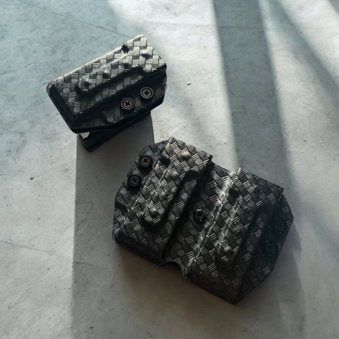 Kydex Colors: The color of your kydex on the outside of the mag carrier. Inside color is determined by the pattern you choose. All of our kydex holsters are 0.080" thick. We offer a wide range of options including, solid colors and carbon fiber patterns.
