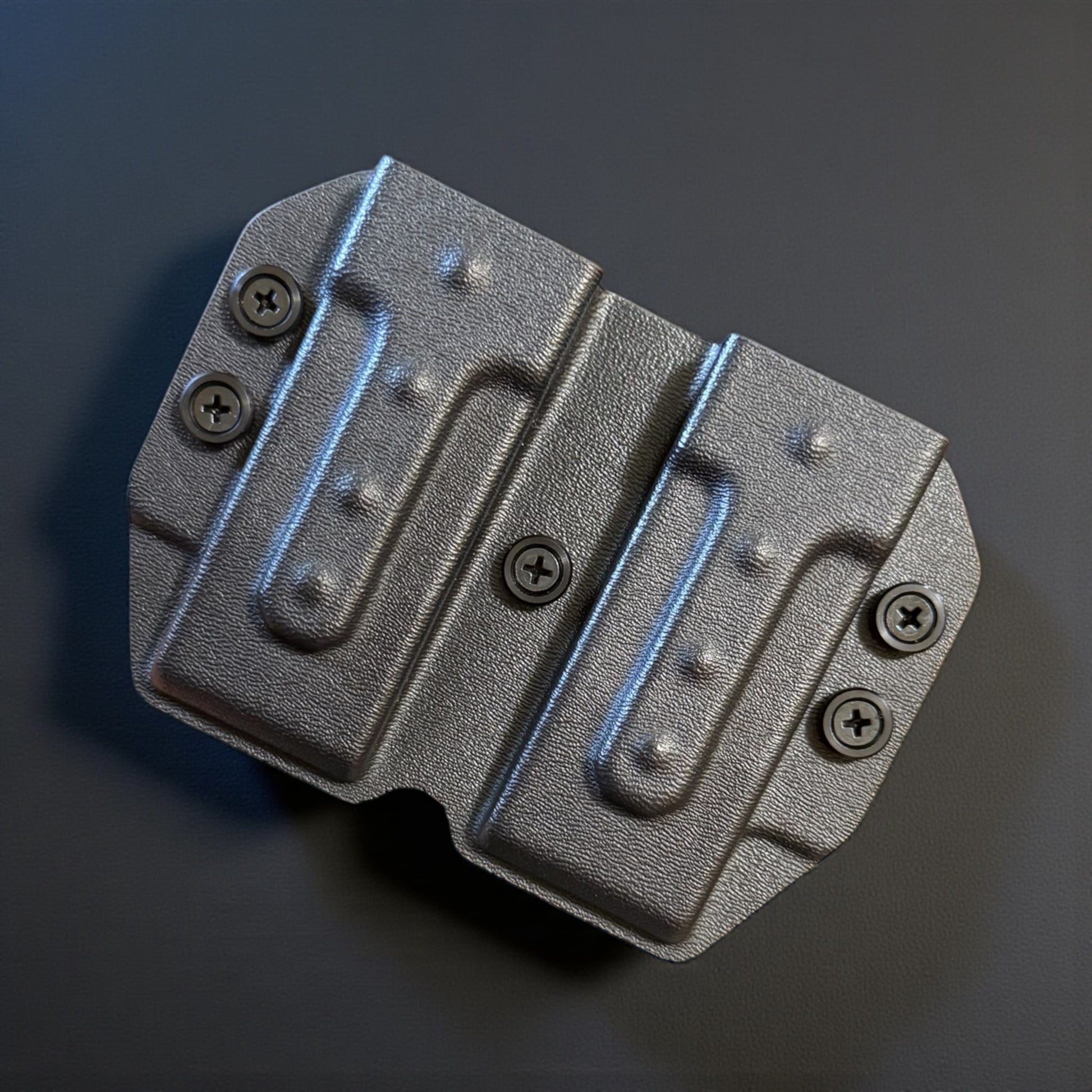 OWB Pistol Double Mag Carrier: Here at Modern Patriot Holsters we take pride in giving our customers the absolute best in customized mag carrier options. Our OWB Pistol Double Mag Carriers are truly a work of art! We offer several kydex color options including carbon fiber options. Coupled with a multitude of belt attachment options to make your holster as simple or as complex as you desire. We finish each holster with your choice of colored finishing washers and screws. Stop searching for ordinary and make a mag carrier that stands out of the crowd!