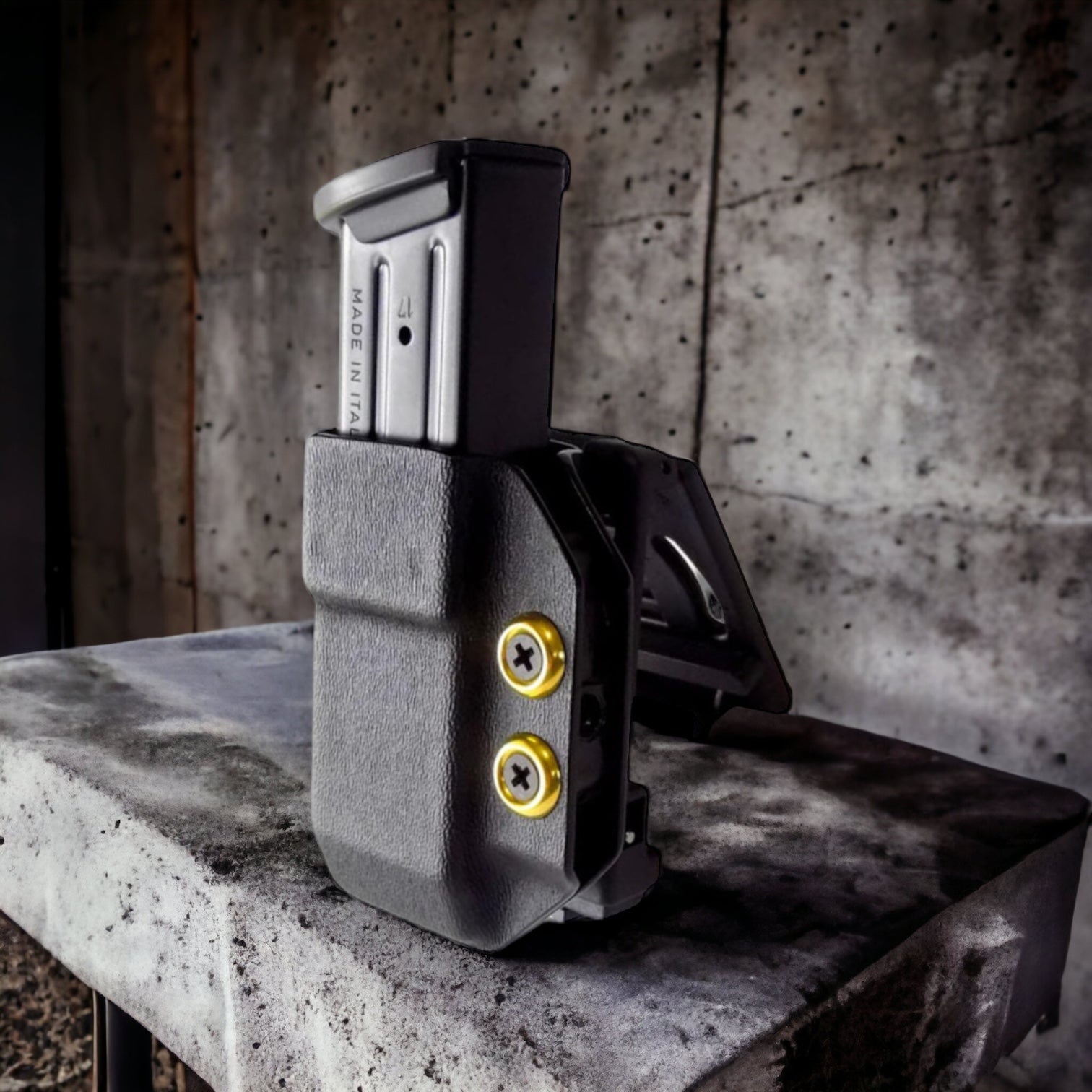 OWB Pistol Mag Carrier: Here at Modern Patriot Holsters we take pride in giving our customers the absolute best in customized mag carrier options. Our OWB Pistol Mag Carriers are truly a work of art! We offer several kydex color options including carbon fiber and much more. Coupled with a multitude of belt attachment options to make your carrier as simple or as complex as you desire. We finish each carrier with your choice of colored finishing washers and screws. Stop searching for ordinary and make a carrier that stands out of the crowd!
