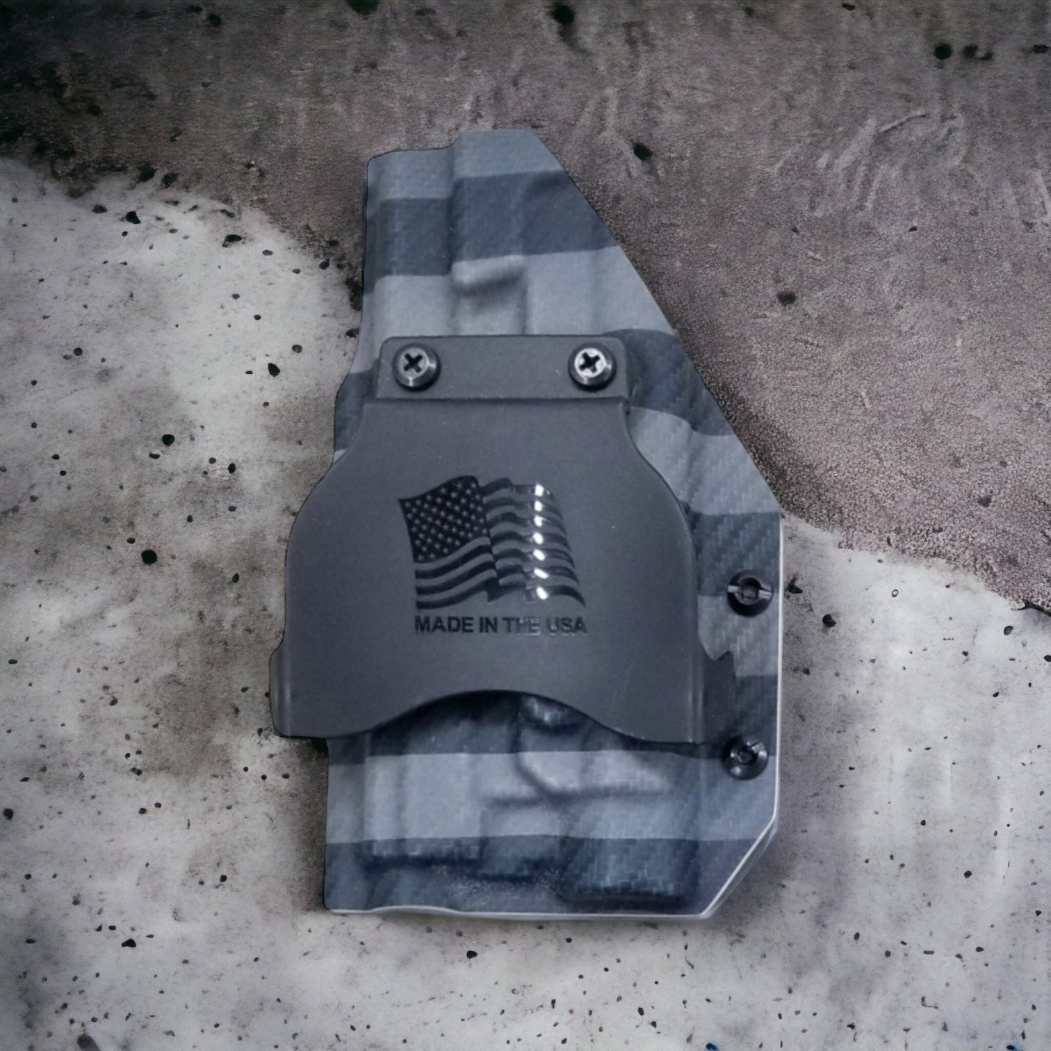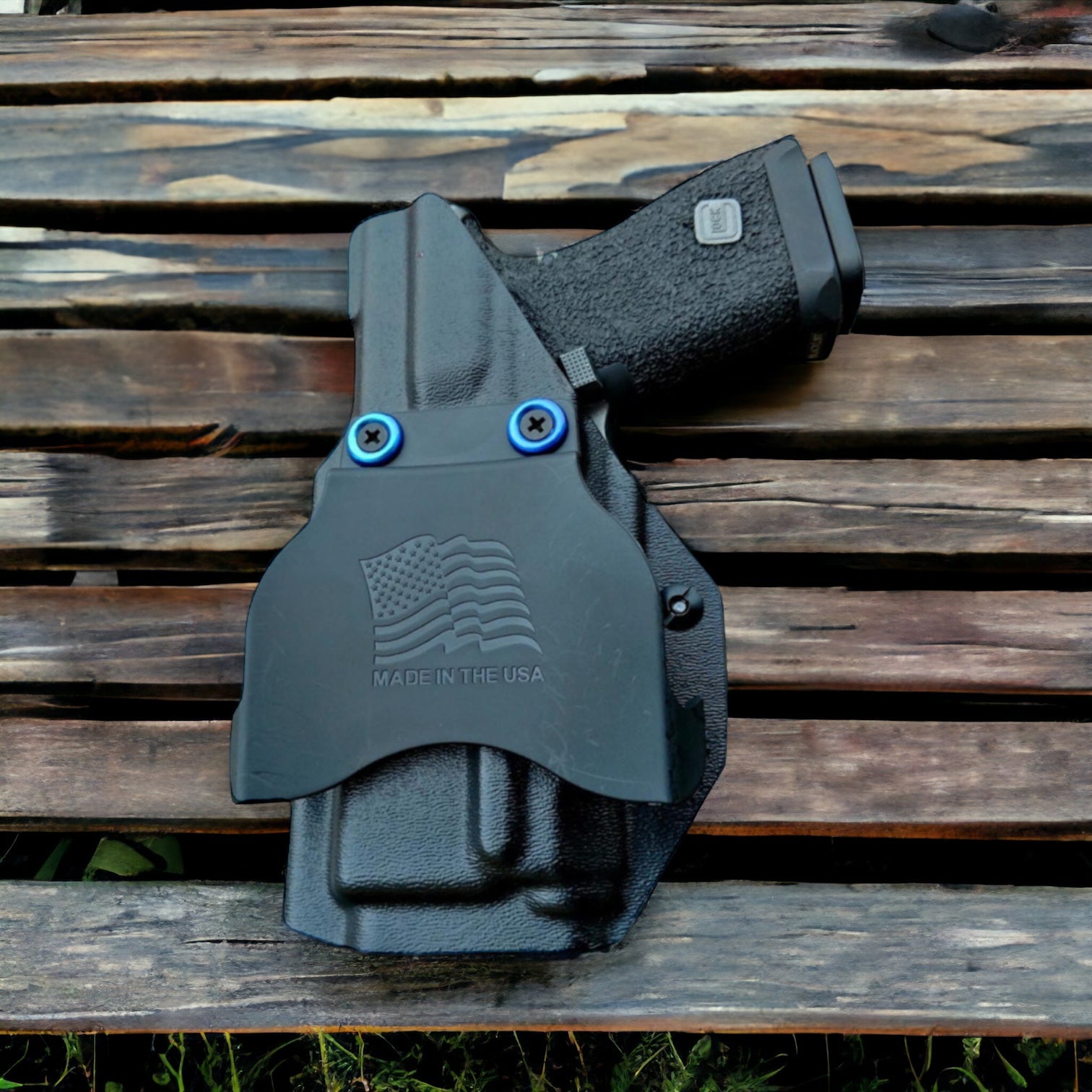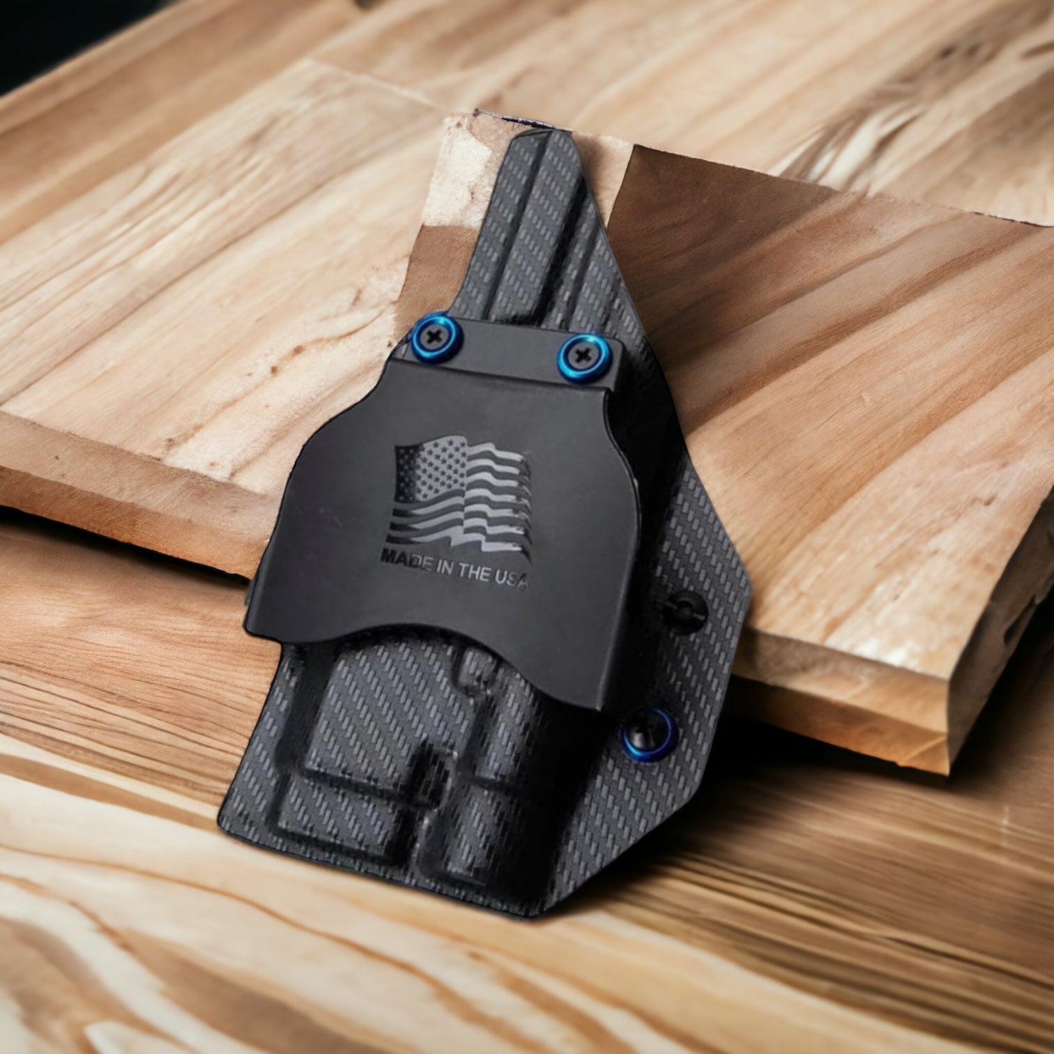 Paddle Holster - Light Bearing: Here at Modern Patriot Holsters we take pride in giving our customers the absolute best in customized holster options. Our Paddle Holsters are truly a work of art! We offer several kydex color options including carbon fiber and much more. We finish each holster with your choice of colored finishing washers and screws. Stop searching for ordinary and make a holster that stands out of the crowd!