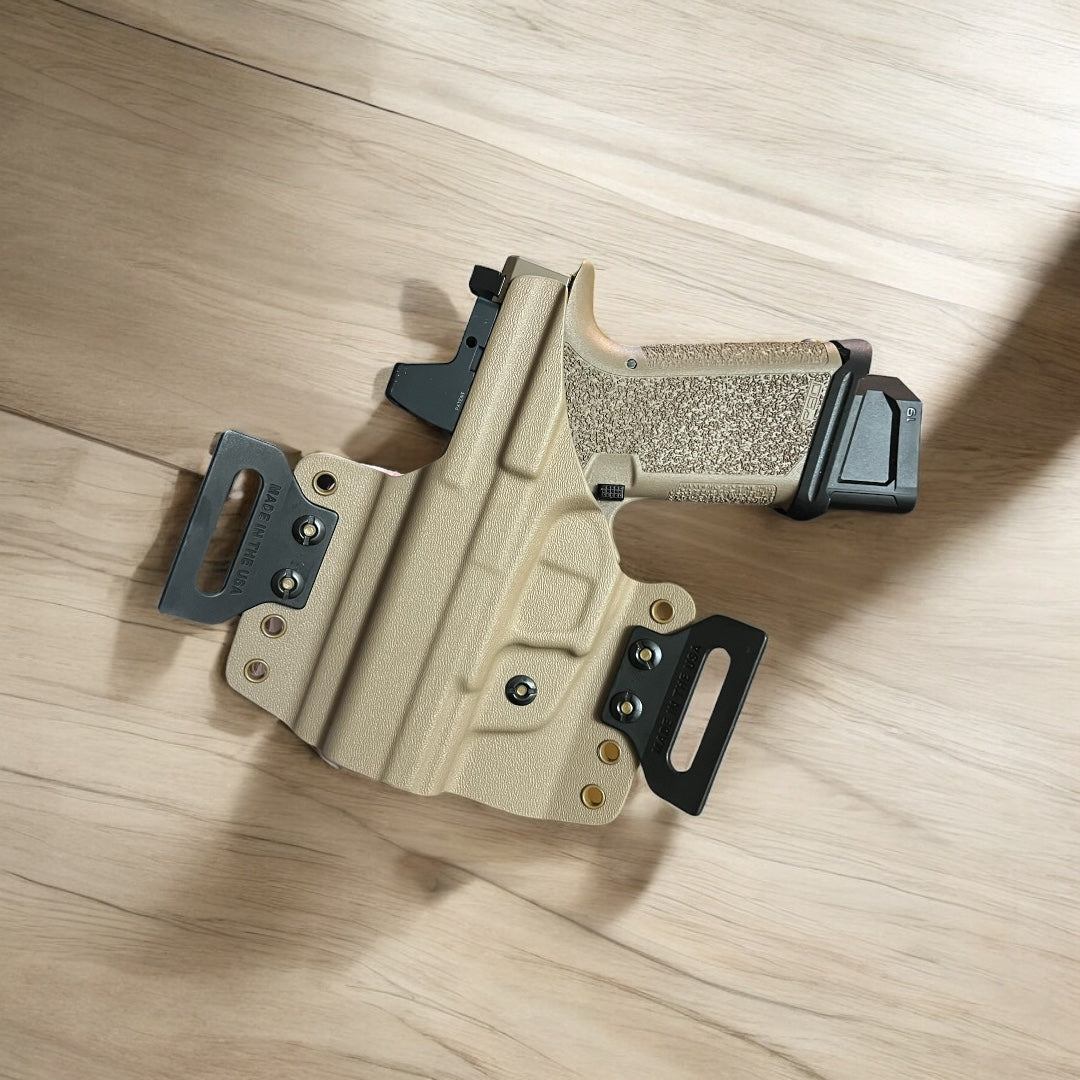 Pro Series: OWB Holster Here at Modern Patriot Holsters we take pride in giving our customers the absolute best in customized holster options. Our OWB Holsters are truly a work of art! We offer several kydex color options including carbon fiber and much more. Coupled with a multitude of belt attachment options to make your holster as simple or as complex as you desire. We finish each holster with your choice of colored finishing washers and screws. Stop searching for ordinary and make a holster that stands out of the crowd!
