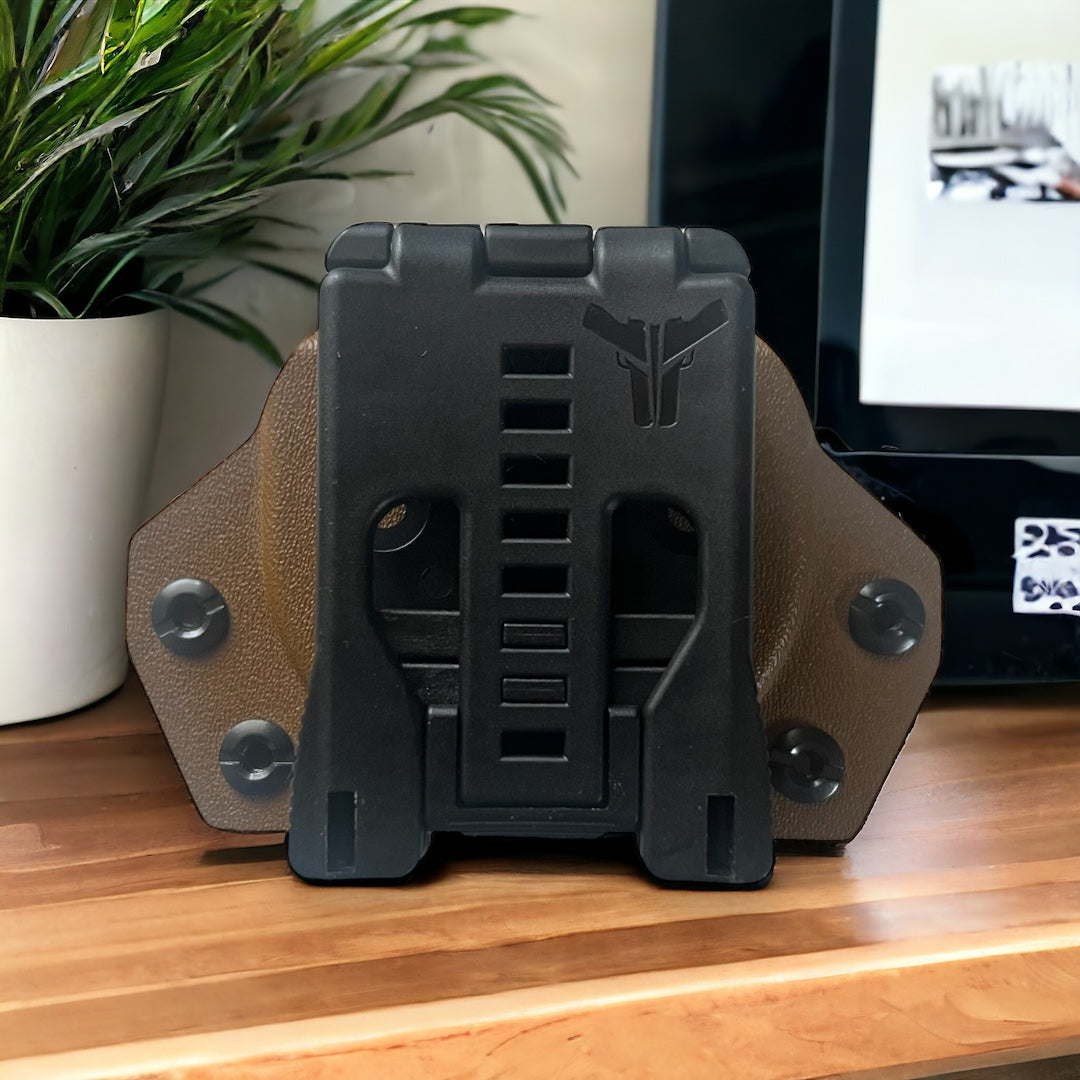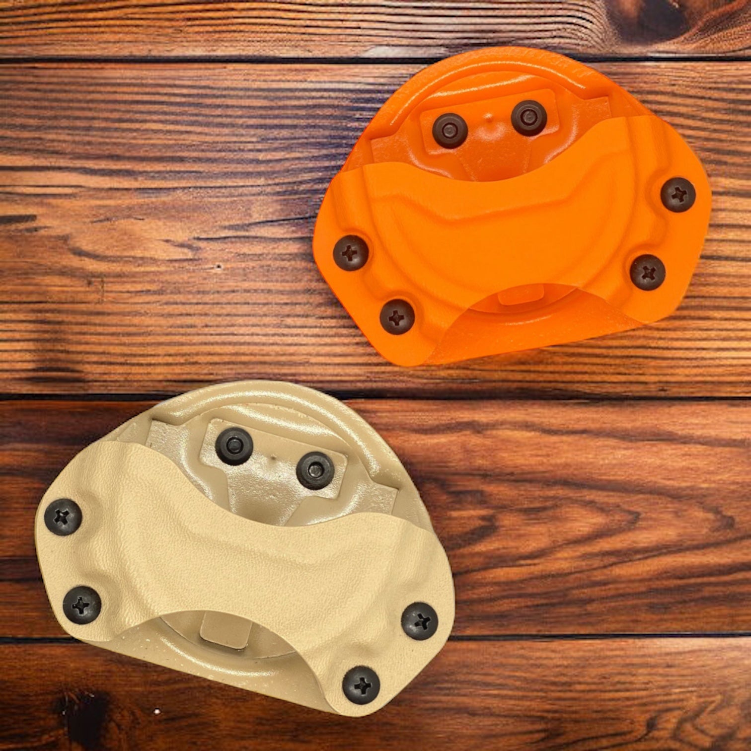 Attachment & Mounting Options: Our carriers can be made to fit a variety of belt attachments or mounts. We offer several options for add ons and take pride in just how customizable our holsters are.